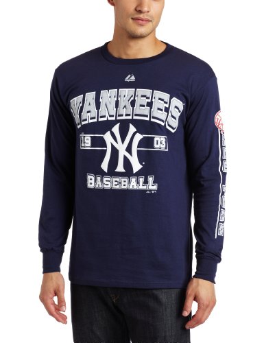 MLB Men's New York Yankees Past Time Original Long Sleeve Basic Tee, Athletic Navy, Small